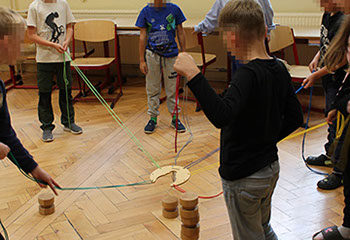 Gemeinschaft und Zusammenarbeit standen im Mittelpunkt beim „Kennenlernspiel mit Wolle“ sowie beim Überwinden eines „Wollspinnennetzes“, wo die Kinder gemeinsam Wege fanden, sich gegenseitig durch das Netz zu helfen.