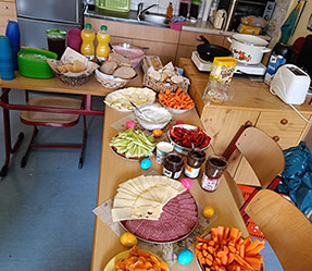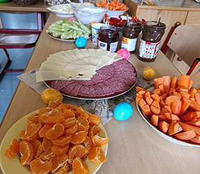 Natürlich durfte auch das leibliche Wohl nicht fehlen. Am Halloween-Buffet konnten sich die Kinder mit leckeren und teilweise passend dekorierten Snacks stärken.