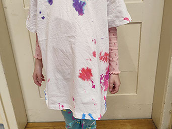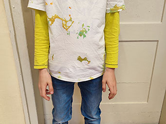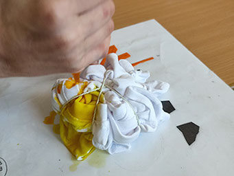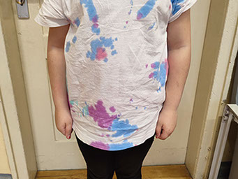 Auch kreatives Arbeiten kam nicht zu kurz: Die Kinder gestalteten eigene T-Shirts im Stil der 90er Jahre und lernten die Technik des Batikens kennen. Sie bastelten auch einen Fotoapparat, wie er früher ausgesehen hat. Darüber hinaus wurde zur Musik der 90er getanzt, gemeinsam gesungen und Bodypercussion eingeübt. So konnten die Schülerinnen und Schüler das Lebensgefühl dieses Jahrzehnts auch musikalisch erleben.