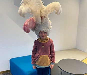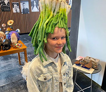Ein besonders mutiger Schüler stellte sich sogar als „Model“ für eine Glatze zur Verfügung – ein Erlebnis, das sicherlich in Erinnerung bleibt! Außerdem durften wir die fertigen Kostüme und Accessoires nicht nur bestaunen, sondern auch selbst ausprobieren. So verwandelten wir uns im Handumdrehen in ganz unterschiedliche Figuren.