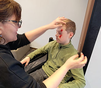 Das absolute Highlight des Tages: Alle Kinder konnten sich professionell schminken lassen! Ob Schürfwunden oder blaue Augen – die Verwandlung war verblüffend echt. Am Ende fehlte nur noch die passende Geschichte zu unseren „Verletzungen“. Klassenübergreifend wurden eifrig verschiedene Gedanken ausgetauscht.