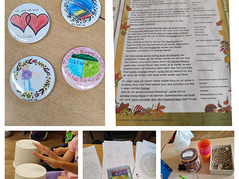 Die Kinder konnten sich für die dunklen Tage Laternen basteln oder Stoffsäckchen für ihre kleinen Schätze mit Kartoffeldruck in herbstlichen Farben verzieren. Außerdem wurden kleine Herbstwichtel aus Tannenzapfen gebastelt. Bei verschiedenen Wettspielen und unserer beliebten Kinderdisco bewegten sich alle Kinder ausgiebig und tanzten ausgelassen zu Cordula Grün, Pocahontas und Co. Für den kleinen Hunger gab es in unserem Hortcafé selbstgebackene Muffins, Kakao und Tee.