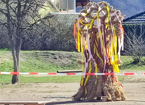 Am 19.03.2024 feierten wir traditionsgemäß mit der Altstadtschule und den Kindergärten aus Kahla das Winteraustreiben. Die Kinder wurden durch "Herrn Winter" in einem kleinen Umzug zu uns auf den Schulhof geführt. Nach der Begrüßung unserer Gäste führten die zweiten Klassen ein Streitgespräch zwischen Winter und Frühling auf. Die Klasse 2 b sang mit Frau Wolter das "Frühlingslied" und lockte damit die Sonne immer mehr an. Anschließend erfreute der Chor mit dem Lied "Alle Farben". Unter der Leitung von Frau Sostak und Herrn Syring entstanden tolle Beiträge der Altstadtschule. So sangen und tanzten die zweiten Klassen zum Lied "Vögelein, Vögelein, tanz mit mir". Die Erstklässler boten uns das Lied "Ich lieb den Frühling" dar und die Dritt- und Viertklässler schlossen sich mit dem peppigen Lied "Für immer Frühling" an. Frau Müller-Ebert stimmte mit der Gitarre dann das Lied "Immer wieder kommt ein neuer Frühling" an und alle sangen mit. Der Winter und der Frühling kämpften dann um die Herrschaft, wobei sich der Winter geschlagen geben musste und die Schneeflocke verbrannt wurde. Zur Erinnerung erhielt jedes Kindergartenkind eine kleine Medaille von den Erstklässlern überreicht.